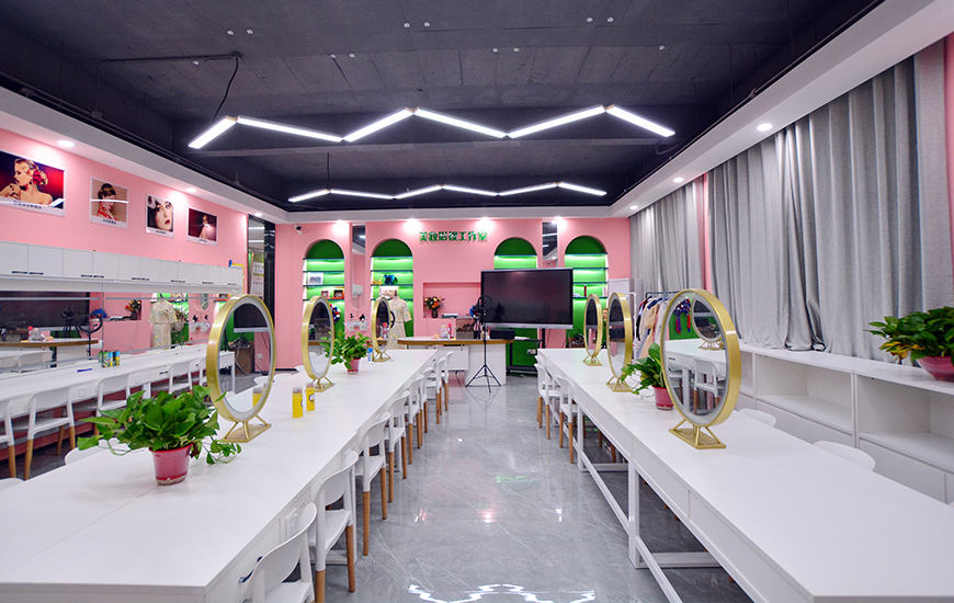 为了打造理实一体化教室,美妆美学实训室将传统化妆室进行升级改造,不仅有价值千元的高端化妆箱,实用化妆台,还增加了互联网先进教学设备,提升课堂教学的高效性,使之成为符合企业需求和教学要求的现代化实训教室。