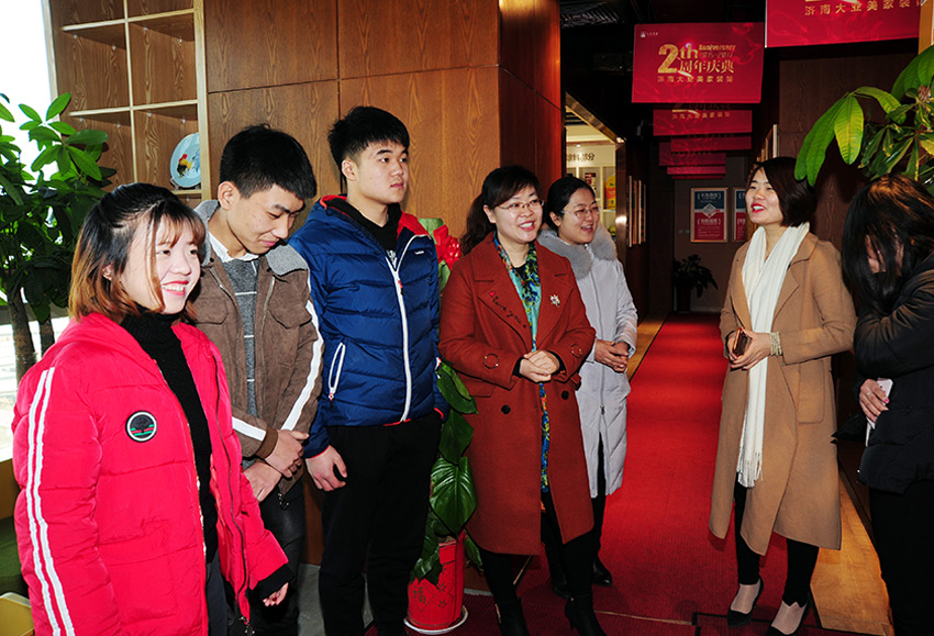 新春伊始,齐鲁大地生机盎然。1月5日上午,山东新华电脑学院特举办毕业学子就业回访活动,院长陈伟红、院长助理陈坤、创就业指导中心主任孟丽等学院领导及老师对大业美家和香港唐风设计公司的新华毕业学子进行了回访,受到了学子们和公司相关人士的热烈欢迎。