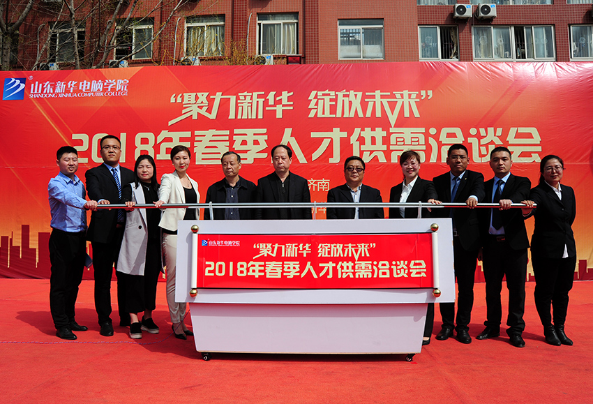 精英盛典,名企齐聚。3月28日上午,备受瞩目的山东新华电脑学院2018春季人才供需洽谈会在西校区隆重举行,济南市人力资源和社会保障局处长韩乃忠、天桥区人力资源和社会保障局局长李旭、副局长孟凡伦、山东新华电脑学院院长陈伟红、院长助理陈坤、市场部主任李壮壮、东校区主任范树明、创就业指导中心主任孟丽等政府及学院领导出席活动,此外,更有120余家知名企业齐聚于此,与山东新华一起共襄盛举。
