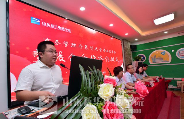 首先,山东新华西校区学生科负责人李主管致辞。李主管表示,商务管理与策划运营是就业率较高的专业之一,很多企业都缺少这种专业性强的复合型人才。山东新华电脑学院专注于互联网教育,紧跟时代发展,依托新华教育集团30余年的办学经验,培养市场需求、企业需求的专业人才,研发并开设商务管理与策划运营专业,并与山东聚蚨盛企业管理有限公司签订校企协议,专业共建,强强联合,培养商务管理与策划运营行业的技能型应用人才,也为选择山东新华的学子们提供更广阔的发展空间与机遇!