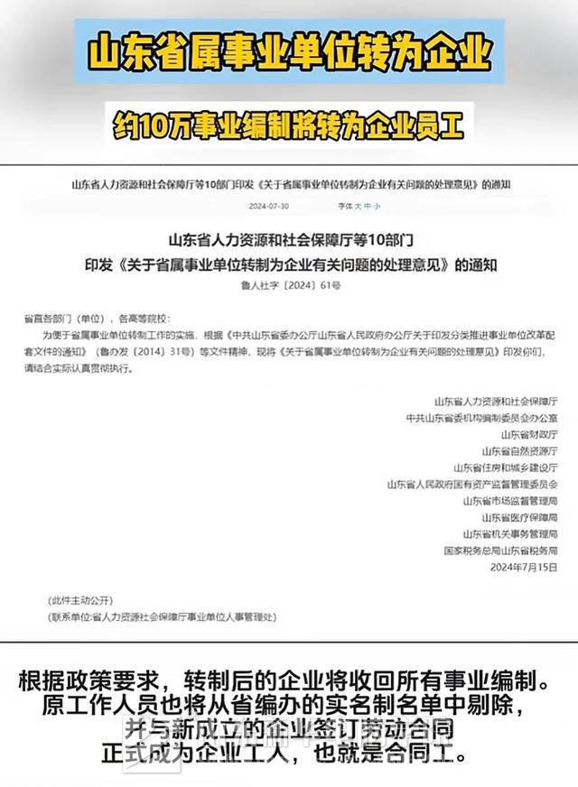 近日,山东省人社厅等十部门联合发布了一项重大通知,标志着省属事业单位向企业化转型的全面改革正式启动。这一改革风暴席卷而来,宣告了传统“铁饭碗”——事业编制的逐步退出历史舞台。